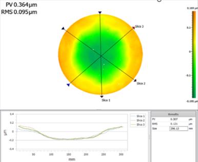 <Flatness> • Global Flatness (Ø300mm) : < 200nm • Local Cell Flatness (□20×20mm) : < 50nm • Slope X/Y : < 6u rad (RMS, 3×3mm) <Roughness> • Sa range of 20~120 nm (SiC, Pin top surface) • Soft polish 対応可能 |